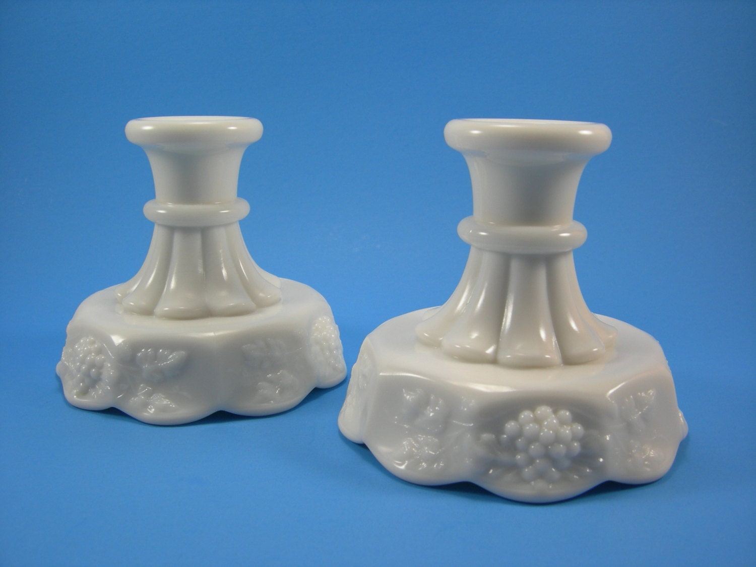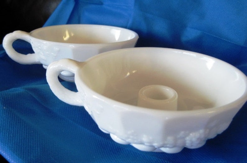 Westmoreland Milk Glass Candle Holders / Westmoreland Paneled Grape Milk Glass Candle Holders by ... - This dog house match holder was originally made by westmoreland specialty co.. The most common milky white opaque type was known as opal glass before the milk glass name became popular. Need assistance with westmoreland glass. Pair of westmoreland milk glass candle holders. Used (normal wear), unsure of maker of candle holders, they are not marked. Westmoreland milk glass ashtray and candle lighter.