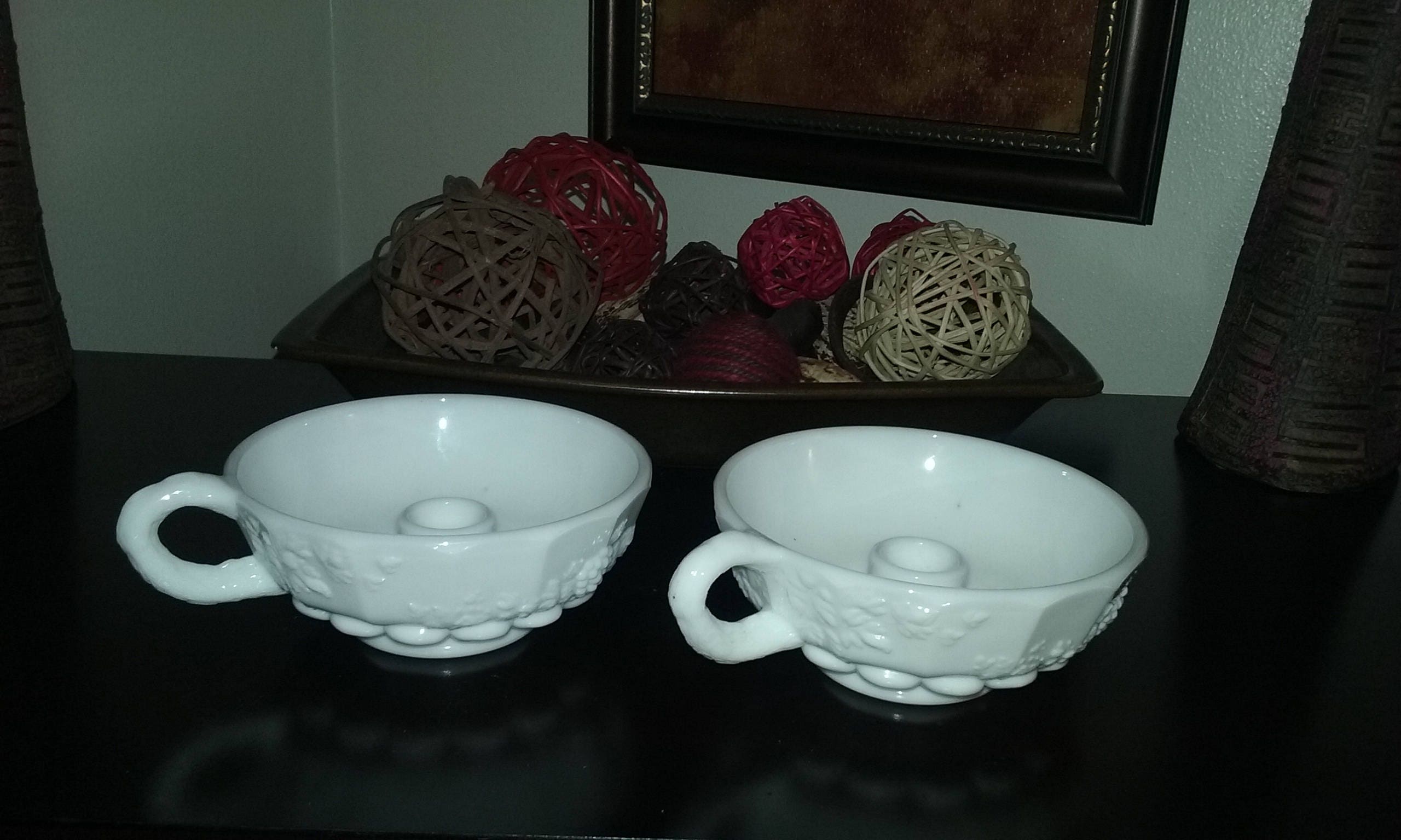 Westmoreland milk glass candle holders.