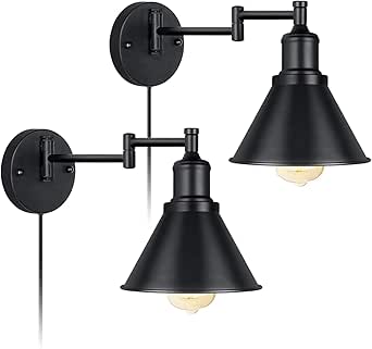 Swing Arm Wall Light Fixtures Wall Light Plug In Cord With On Off Switch On Cord Industrial Wall Sconce Black Finish 2 Lights Amazon Com from m.media-amazon.com This wall sconce has an arm of rustic wood which suspends from a satin nickel back plate. Trlife dimmable gooseneck wall sconces, wall sconce plug in wall light fixture with on/off switch, wall sconce lighting with 6ft plug in cord, e26 base, ul listed (2 pack) 4.7 out of 5 stars. Cord by globe electric tristan 4.8 in. Banish the boring with the flea market rx bare bulb wall. This wall sconces lighting has a fixed base, a metal lampshade and a copper lamp handle. Kovacs 2 light 4.5 height ada compliant led plug in wall sconce in brushed nickel with pyramid shade from the george's reading room collection. 4.6 out of 5 stars. Hang it on the wall, plug it in and you're good to go.